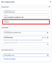 | 09:57, 4. Mär. 2026 | Bitwarden-03.png (Datei) | 16 KB | Jnk | {{Information | description = Screenshot Bitwarden - Zugangsdaten erstellen | source = Screenshot | date = 04.03.2026 | author = Benutzer:jnk | permission = {{PD-user|jnk}} }}Kategorie:Screenshots | 1 | |