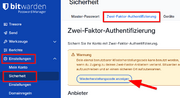 | 11:07, 6. Mär. 2026 | Bitwarden-mfa-02.png (Datei) | 88 KB | Jnk | {{Information | description = Screenshot Bitwarden - Wiederherstellungscode sichern | source = Screenshot | date = 06.03.2026 | author = Benutzer:jnk | permission = {{PD-user|jnk}} }}Kategorie:Screenshots | 1 | |