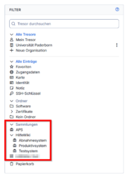| 14:05, 4. Mär. 2026 | Bitwarden-33.png (Datei) | 43 KB | Jnk | {{Information | description = Screenshot Bitwarden - Sammlungen in der Tresorübersicht | source = Screenshot | date = 04.03.2026 | author = Benutzer:jnk | permission = {{PD-user|jnk}} }}Kategorie:Screenshots | 1 | |