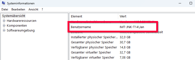 • In diesem Beispiel ist der Benutzername IMT-JNK-T14\Jan