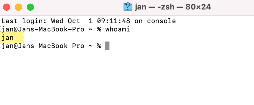 * Geben Sie folgenden Befehl ein: <code>whoami</code>
