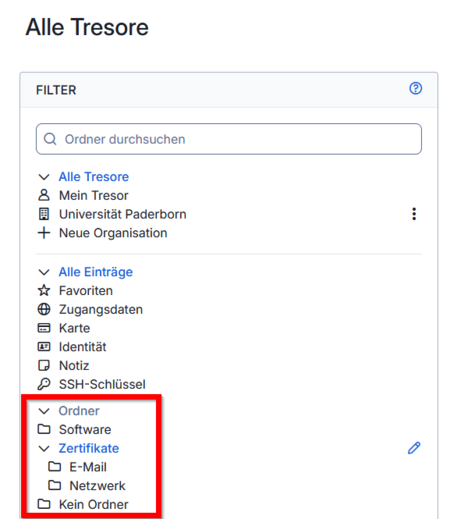 - Die Ordnerstruktur können Sie in der Tresor-Übersicht am linken Rand sehen.