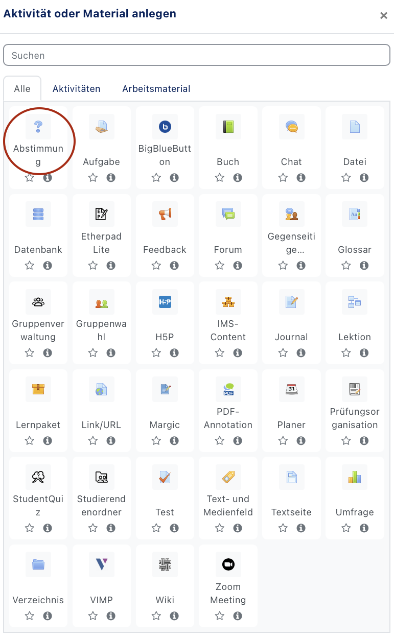 | aktuell | 08:14, 23. Jul. 2025 | 780 × 845 (86 KB) | Mfunk (Diskussion | Beiträge) | {{Information | description = Screenshot Moodle Abstimmung anlegen | source = Screenshot | date = 23.07.2025 | author = Benutzer:mfunk | permission = {{PD-user|mfunk}} }}Kategorie:Screenshots | |