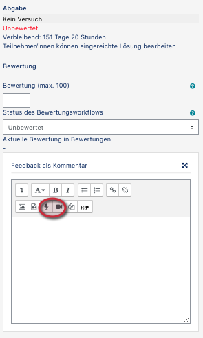 Description Screenshot of PANDA Abgabe Feedback als Multimedia-Datei