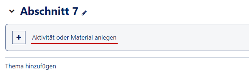 | aktuell | 08:11, 23. Jul. 2025 | 807 × 315 (17 KB) | Mfunk (Diskussion | Beiträge) | {{Information | description = Screenshot Moodle Aktivität anlegen | source = Screenshot | date = 23.07.2025 | author = Benutzer:mfunk | permission = {{PD-user|mfunk}} }}Kategorie:Screenshots | |
