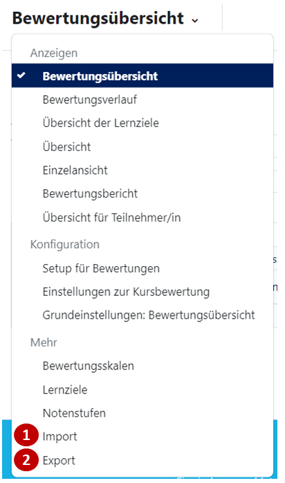 | aktuell | 09:29, 23. Jul. 2025 | 361 × 633 (31 KB) | Mfunk (Diskussion | Beiträge) | {{Information | description = Screenshot Moodle Bewertung Import Export | source = Screenshot | date = 23.07.2025 | author = Benutzer:mfunk | permission = {{PD-user|mfunk}} }}Kategorie:Screenshots | |