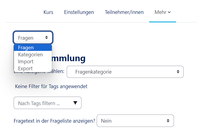Description Screenshot of Pull Down Menü der Fragensammlung