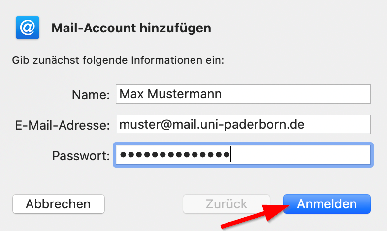 | Description | Screenshot of Mail einrichten Daten eingeben |