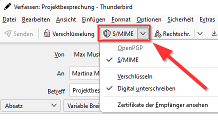 | Description | Screenshot Thunderbird unter Windows 11 - E-Mail verschlüsseln oder signieren |
