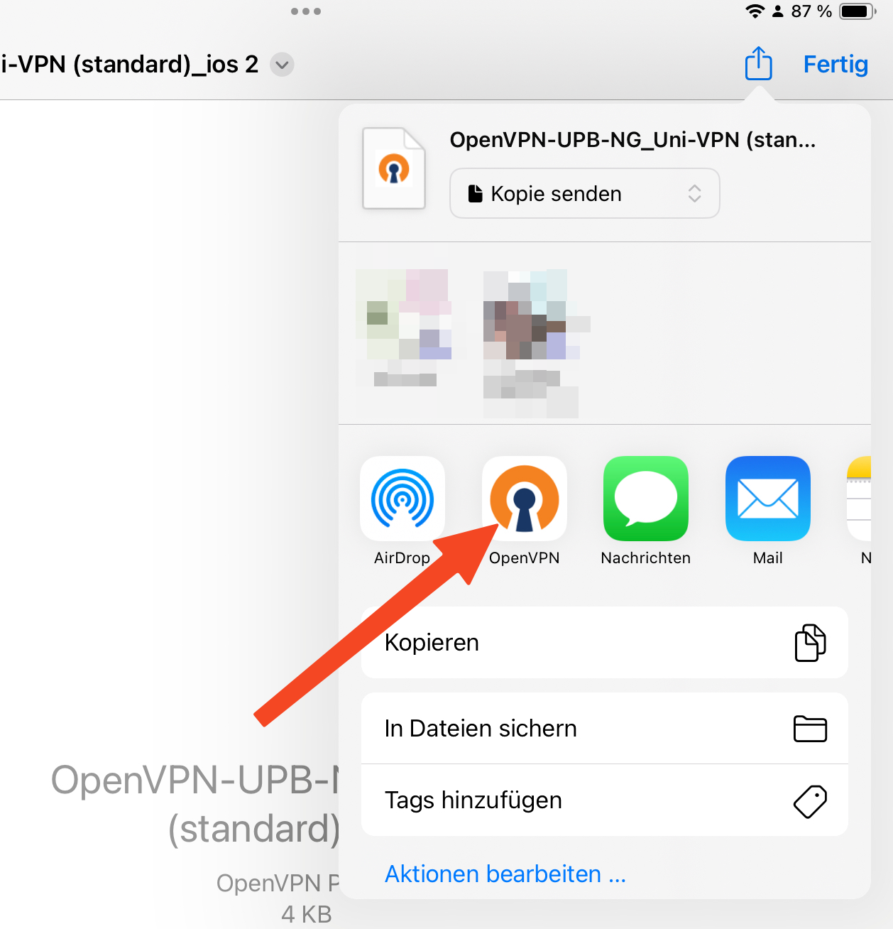 | Description | Screenshot Safari iOS 17 - Netzwerkzertifikat in OpenVPN öffnen |