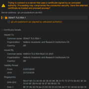 | 06:53, 17. Jun. 2025 | Cert-error-untrusted-authority.png (Datei) | 61 KB | Jnk | {{Information | description = Screenshot Certificate Untrusted Authority | source = Screenshot | date = 16.06.2025 | author = Benutzer:jnk | permission = {{PD-user|jnk}} }}Kategorie:Screenshots | 1 | |
