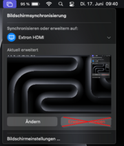 | 08:50, 17. Jun. 2025 | MacOS-Erweitern-stoppen.png (Datei) | 131 KB | Jnk | {{Information | description = Screenshot macOS - Bildschirm Erweitern stoppen | source = Screenshot | date = 17.06.2025 | author = Benutzer:jnk | permission = {{PD-user|jnk}} }}Kategorie:Screenshots | 1 | |