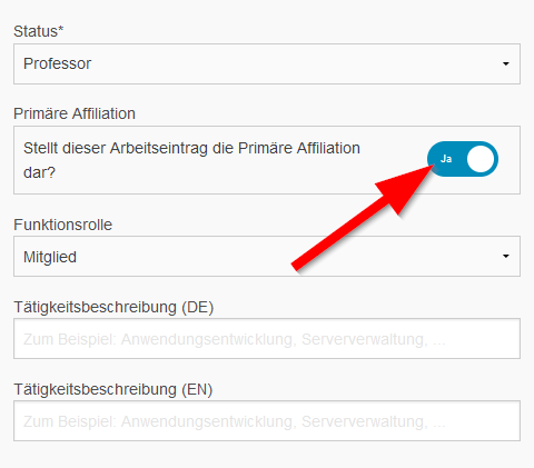 | Description | Screenshot Personenmanager - Primäre Affiliation |