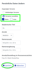 | Description | Screenshot Serviceportal - Vornamen auswählen |
